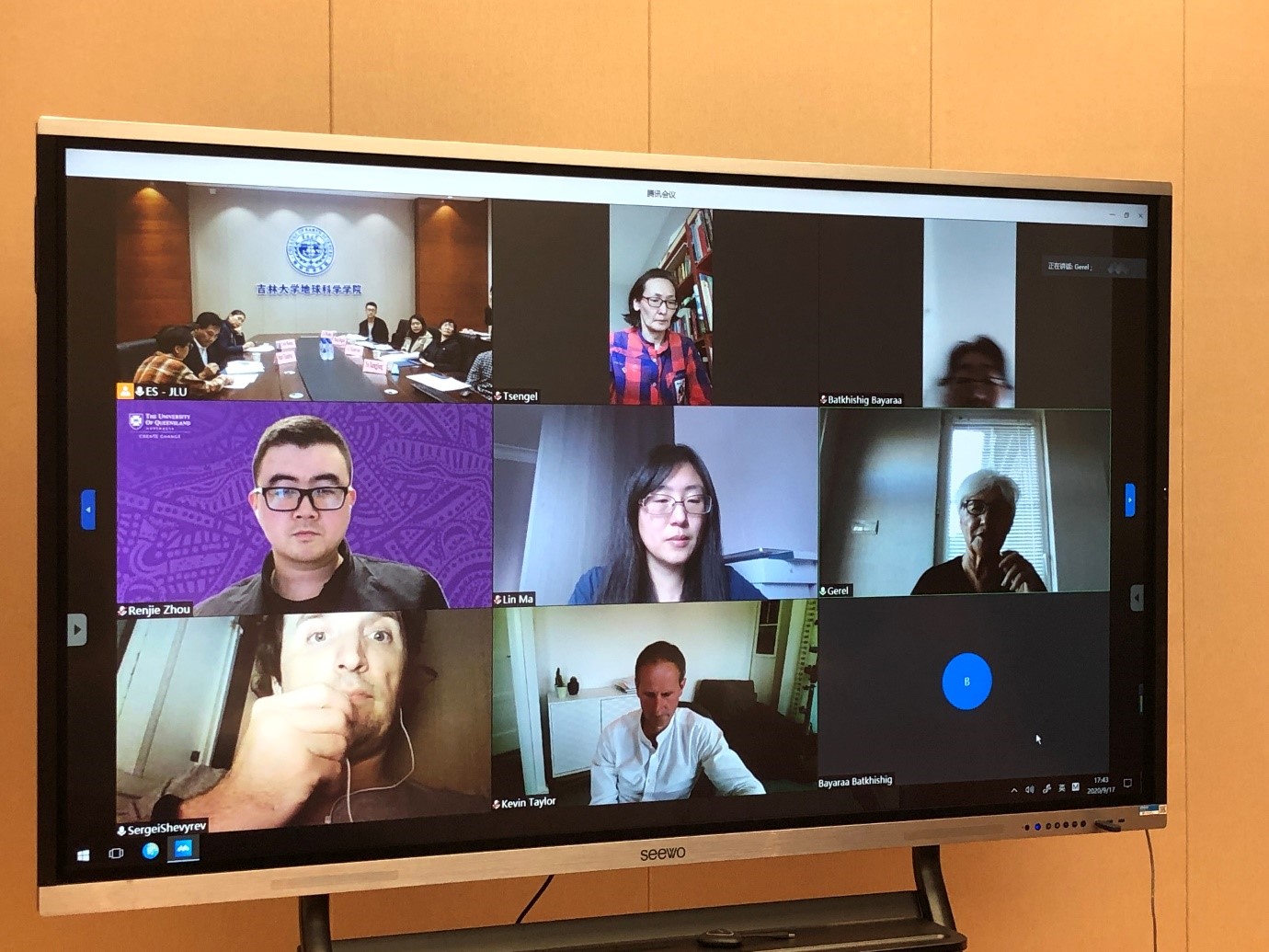 2020 International Conference on the Cooperation of Industry, Education, Research and Application was hosted by Jilin University on 15th September, 2020, and College of Earth Sciences undertook the Forum on Earth Science Theory and Technological Innovation on 17th September, 2020. There were 7 experts and scholars from the University of Manchester, the University of Queensland, Far Eastern Federal University and Mongolian University of Science and Technology invited to attend the meeting through Tencent Meeting. Also 6 experts and scholars from College of Earth Sciences who are interested in Quaternary Geology, Land Resources Management and Mineral Resource Prospecting and Exploration were attending the conference. Professor Shan Xuanlong, Dean of the College of Earth Sciences, chaired the conference at the time.