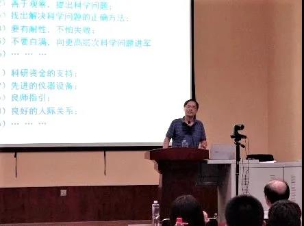 赵院士为同学们总结了“怎样成为一名成功的科学家?”他说道,成功的科学家不仅需要自身努力,而且需要良好的外部条件。兴趣至关重要,要善于观察并提出科学问题,然后找出解决科学问题的正确方法,在此过程中要保持耐性,不怕失败。取得成果之后不能自满,要向更高层次科学问题进军。当然,科研资金、先进仪器以及良师的指引也是不可或缺的。