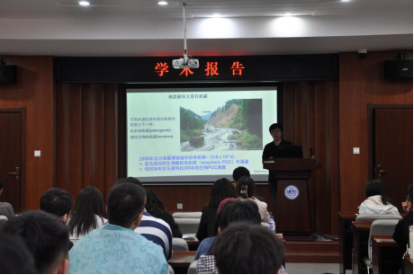 (中国科学院地球环境研究所研究员汪进以“新西兰历史地震对地貌演化和有机碳埋藏的影响”为题作学术报告)