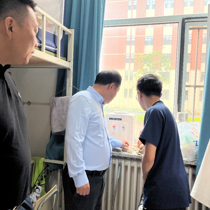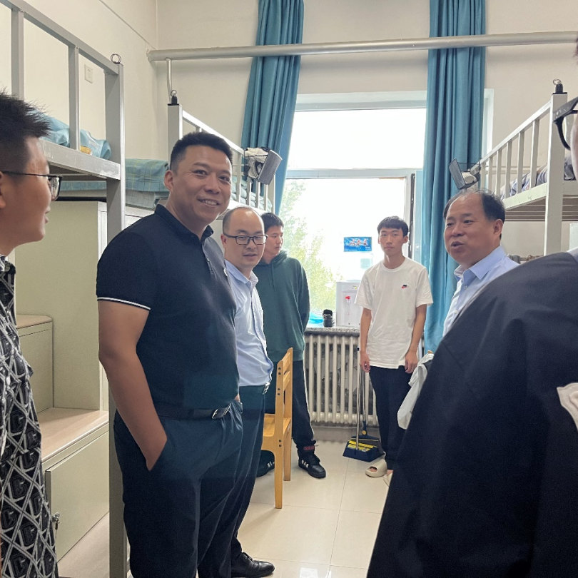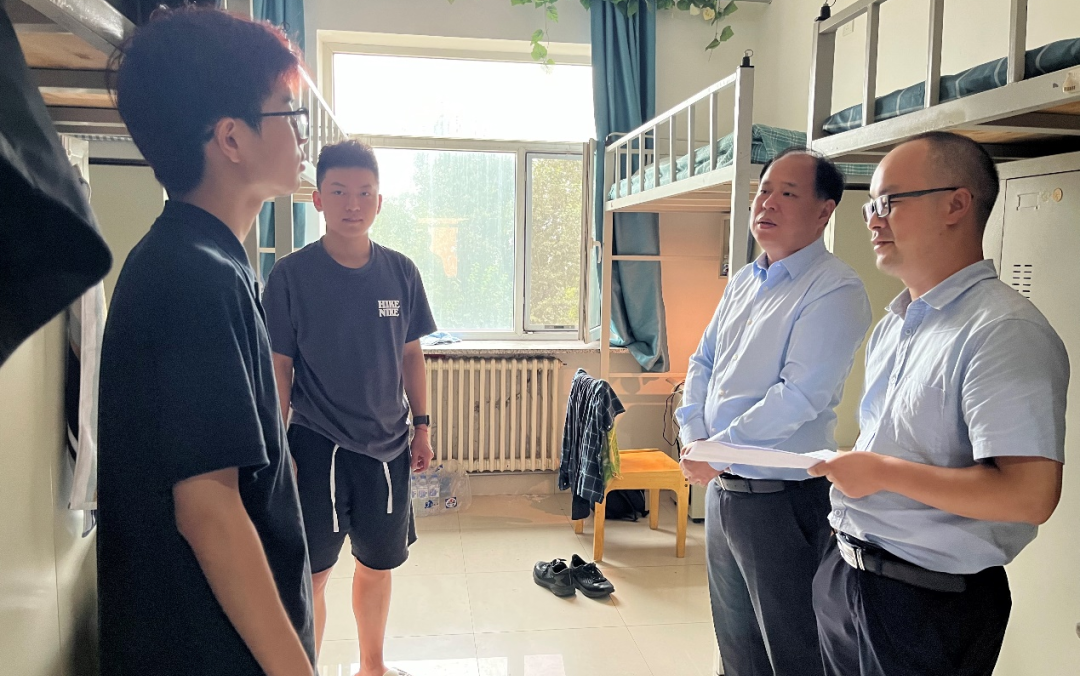 在北苑一公寓6096寝室,得知新生来自山东、甘肃、新疆、重庆等不同省份时,杨洲书记询问了大家的来校交通方式、父母是否陪同、是否适应东北的气候和饮食等。同学们纷纷谈了自身感受,杨洲书记分享了自己的大学生活经验,鼓励大家尽快适应东北生活,充分锻炼自己,提高自主生活意识,加强沟通,建立良好的人际关系,努力营造和谐稳定的寝室氛围。在6137寝室,当听到新生家庭遭遇洪涝灾害导致农作物被淹时,杨洲书记详细询问了学生家庭的受灾情况,了解了学生当前学习生活状况。李阳副书记介绍了学院对受灾学生采取的关怀相关举措。杨洲书记鼓励学生以积极的心态正视家庭遇到的困难,学会在逆境中成长,努力学习、自立自强,以坚定的信念、踏实的行动、丰富的知识改变命运。