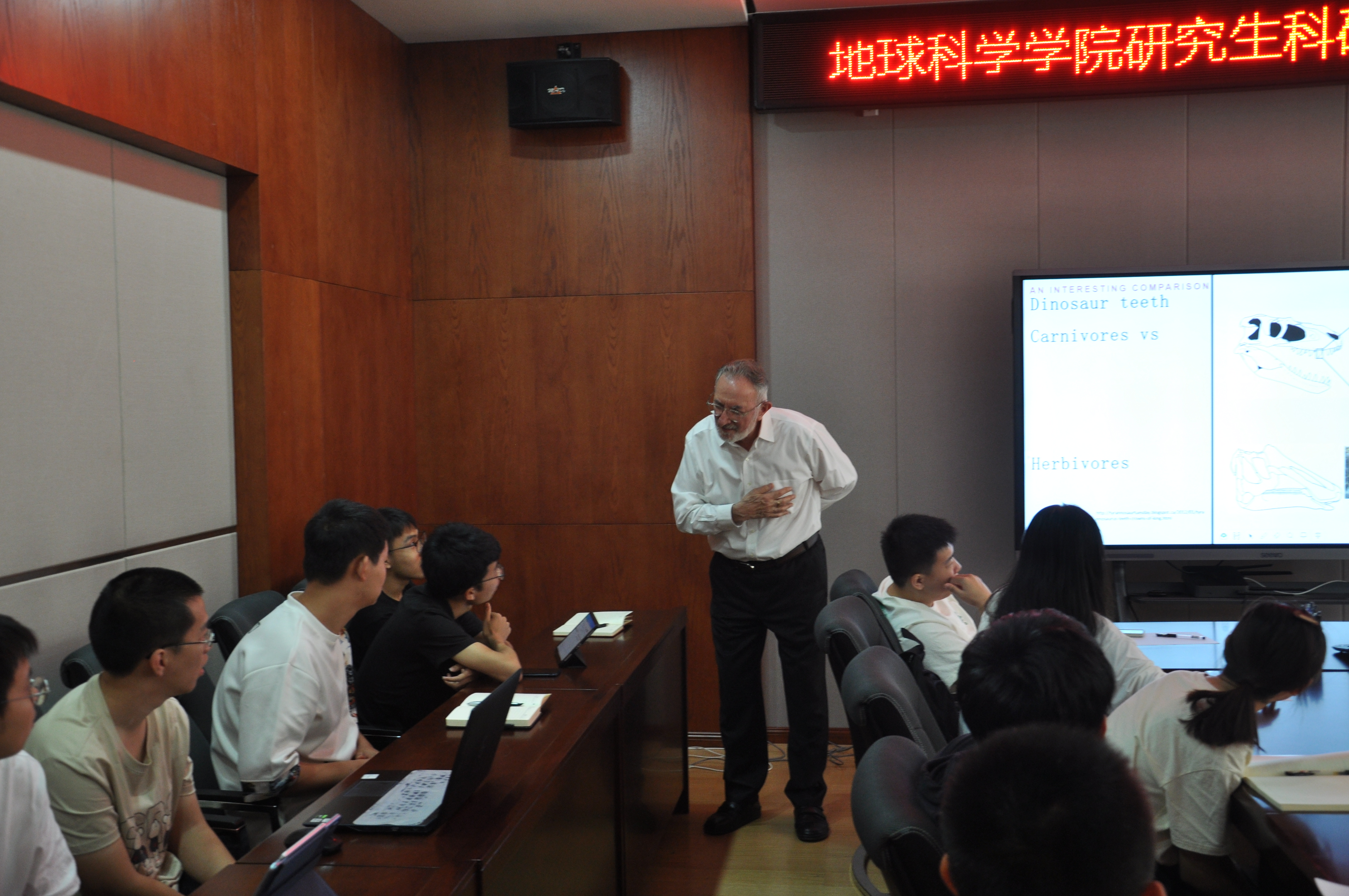 外聘杰出教授、恐龙演化研究中心名誉主任罗伯特·赖兹教授在鸽子楼109-2会议室开展研究生科研生涯规划分享会。活动由党委副书记马旭主持,学院副院长柳蓉、恐龙演化研究中心副主任陈军、古生物与地层学教研室主任李晓波参加此次活动。