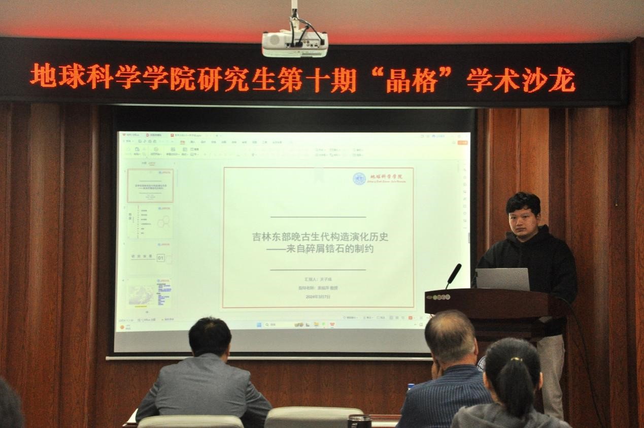 活动上,赵佳奇同学分析论述了辽北清原地区中生代花岗质岩石形成时代、变形特征及其地质意义。周颂同学讲述了中国东北地区额尔古纳韧性剪切带花岗质糜棱岩的形成时代与变形特征。关子成同学分享了吉林东部晚古生代构造演化—来自碎屑锆石的制约。庄思潼同学以清原地区井家沟岩组为例,探讨了中-下地壳层次变质岩石变形机制。魏虹羽同学分享了如何运用数值模拟板块俯冲来探讨板块俯冲带来的地壳变动、地震活动等现象。李效港同学分析论述了吉中和新安屯地区钼矿床的成因及找矿潜力。赵立翔同学分享了通过对北辽河群基性岩的地质年代学和地球化学的研究,探讨了胶--吉带的成因与构造演化。