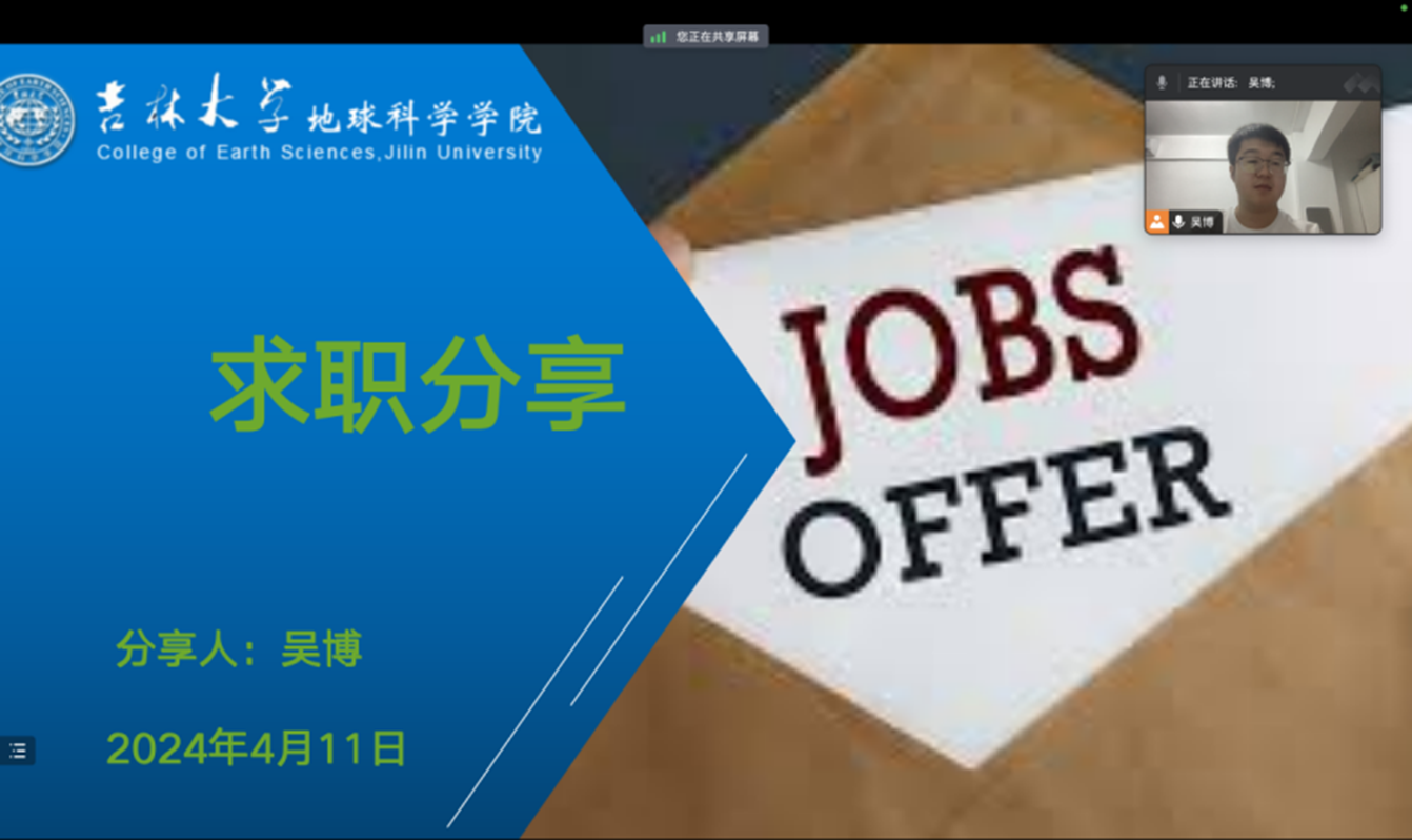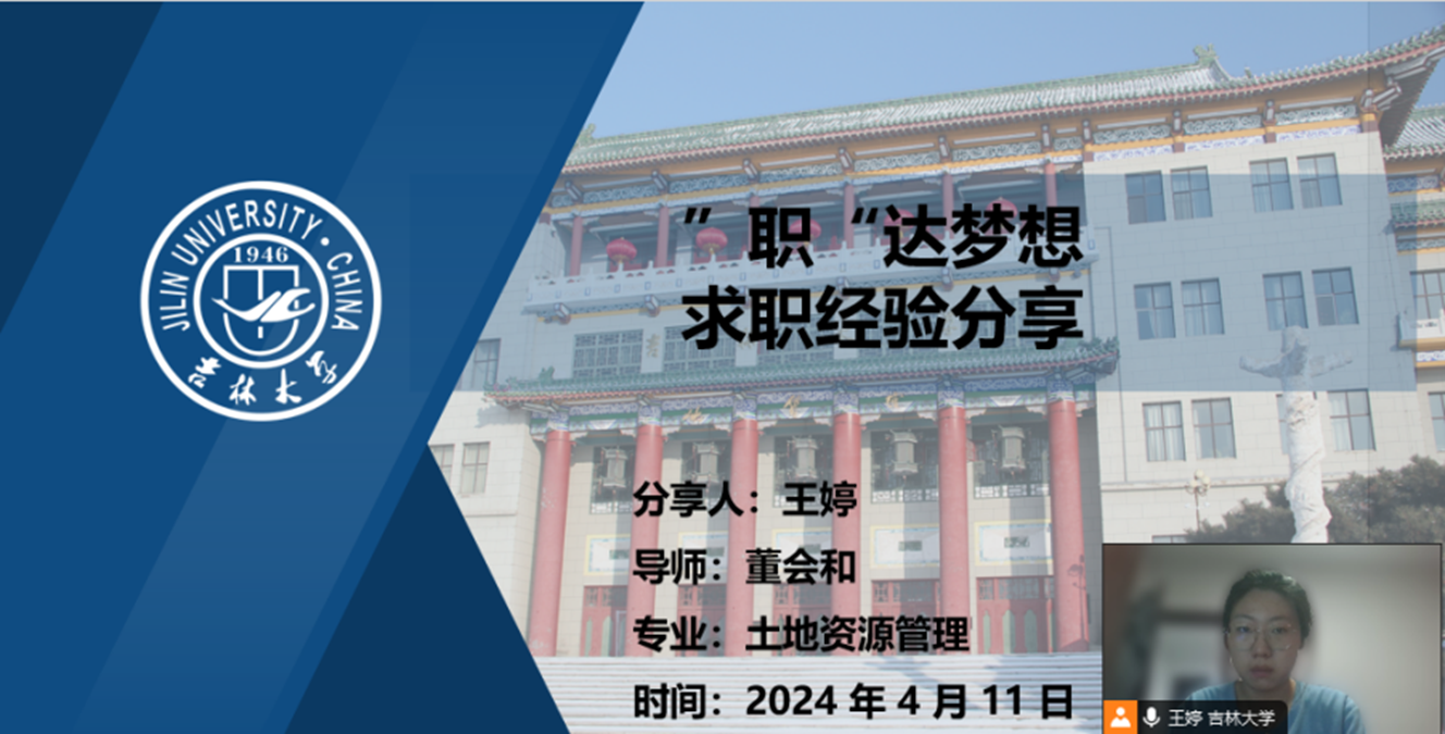 为加强研究生就业指导工作,立足研究生就业需求,拓宽就业思维和就业广度。学院于4月11日在鸽子楼301教室开展“榜样‘职’达,‘就’在大厂”行业外专题就业经验分享会。本次活动邀请2023届构造地质学专业硕士毕业生贾金峰、2021级资源与环境专业硕士生吴博、2021级土地资源管理专业硕士生王婷做线上分享。分享会由学院研究生辅导员姜鹏主持。