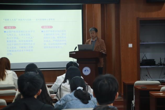 方老师还通过三个思想汇报范例进一步阐述了“思想上入党”现实意义和重要作用,强调真正从思想上入党就是要解决“为什么”和“怎么做”的问题,并提出四点努力建议,即:从历史足迹中尤其是党史中寻求证明、探寻依据,建立正确的历史观;从现实生活中了解情况、认清形势,拥有正确的现实观;从未来发展中看清趋势、明晰需要,把握正确的发展观;基于“思想上入党”的基本要求,脚踏实地,不断提升自身素养。最后,方老师强调,学生党员要了解时事、关注发展;要善于研究历史,观今宜鉴古,学会将过去与现在、现在与将来联系起来;要学会理论与实际相结合,让成长之路贯穿于中华民族伟大复兴的过程之中。