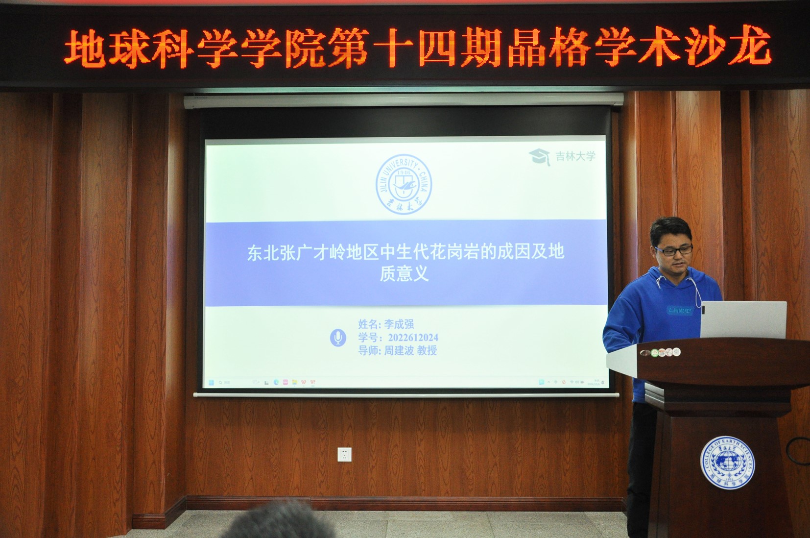 活动上,李成强同学探讨了东北中生代花岗岩的成因与构造环境背景,以及小兴安岭-张广才岭区域构造演化历史和成矿关系;王正松同学研究了吉林省安图县石人沟超镁铁质岩体地球化学、Hf同位素特征,揭示了促使区域岩浆体系达到硫饱和的主要机制;刘芯佟同学通过研究内蒙古黄岗矽卡岩铁锡矿床地质特征,揭示成矿岩浆演化及控矿因素,探讨了成矿早期流体特征及成矿意义;张泽仁同学分享了关于通化米架子金矿矿床地质特征方面的发现,认为米架子金矿床应为中低温岩浆热液型金矿床且成矿作用方式以充填作用为主;侯松林同学则立足于矿床地质、成岩成矿年代学、地质流体和H-O同位素等方面研究,聚焦于揭示其成矿时代、成矿流体的来源和演化、成矿区域区域构造背景;尼加提·伊里同学探讨了扬子北缘米仓山野猪塘金矿地质特征,表明野猪塘金矿形成于新元古代早期。