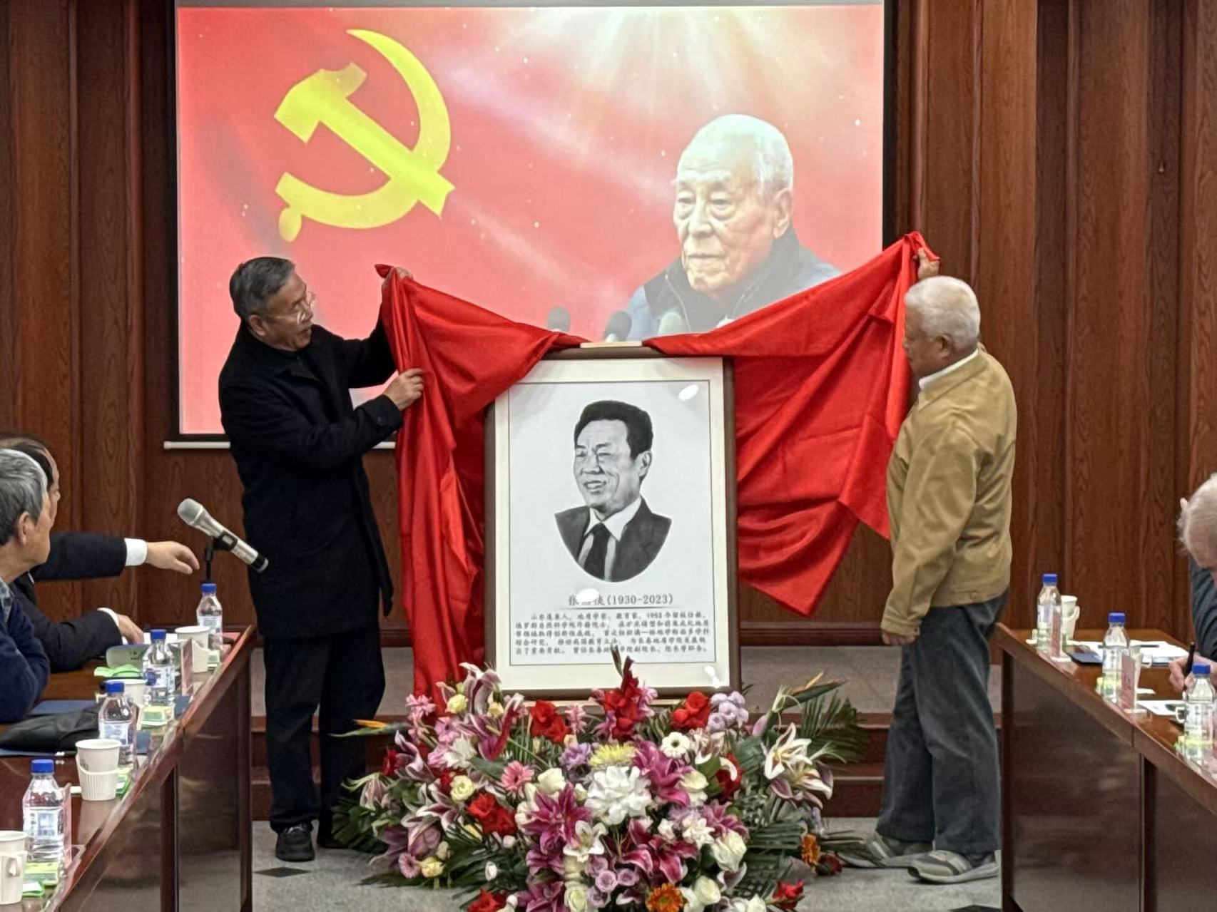 原党委副书记、副校长韩晓峰老师共同为张贻侠同志画像揭幕。画中,张贻侠同志面庞深邃、目光如炬、笑容满面,透漏着决心、乐观和力量,仿佛指引着地质学科的发展方向。全体与会人员面向画像鞠躬致敬。