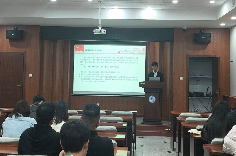 最后,硕士生第二党支部书记史哲总结发言,本次主题党日活动,增强了硕博支部党员的凝聚力和责任感,搭建了硕博支部党员交流学习的良好平台,实现了硕博党员之间的成长共进,推动了深入贯彻中央八项规定精神学习教育走深走实,有效的加强了党员的作风建设理论成果。