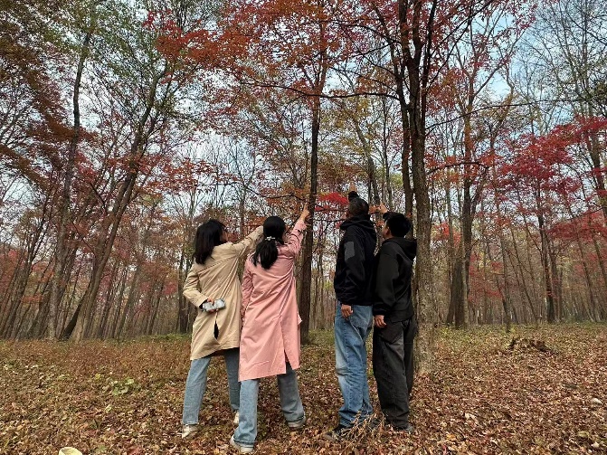 10月14日清晨,满载着欢声笑语的大巴车从学院出发,驶向位于蛟河的红叶谷。一路上,大家暂时放下了平日繁重的教学与科研工作,兴致勃勃地欣赏着窗外飞驰而过的秋日胜景,聊着家常,