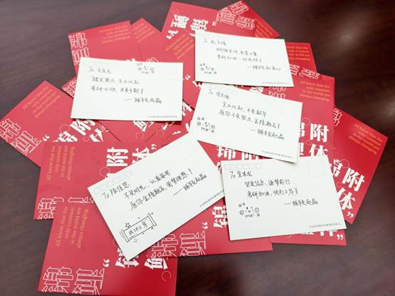 本次加油包的筹备工作由学院2022级本科生辅导员赵晶老师牵头,组织学生志愿者共同完成。从物资遴选到包装整理,各环节均经过细致规划;其中最具心意的,是赵晶老师亲笔书写的专属定制明信片,以激昂寄语传递鼓舞,将学院对追梦人的关怀与盼望凝注其中,盼地科学子圆梦考研。