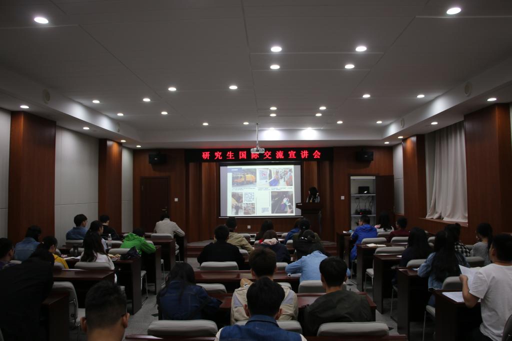 活动邀请了国家公派联合国实习生2016届校友徐政雪,国家公派联合培养博士2015级博士研究生徐久磊、王一存,台湾交换学习2015级硕士研究生常文博进行分享交流,本次交流会由杨德彬副院长主持。徐政雪为大家分享了申请联合国实习生、联合国志愿者的途径,以及参加联合国教科文组织期间进行的“国际水文计划”拉丁美洲及加勒比海地区项目组的经历。徐政雪通过在联合国实习感受到“人的成功更多地表现在爱与被爱”,并用自己从学生到联合国实习生再到贵州省侗族大寨公益组织创始人的经历,向大家展现了自己是如何通过国际交流锻炼了自己多方位的能力,为同学们未来的选择方向打开了更多的思路。