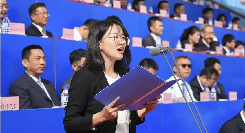 最后由教师代表国家万人计划领军人才国家杰出青年基金获得者物理学院院长博士生导师马琰铭教授发言,“做好自己,活出精彩” 马琰铭教授希望同学们发挥自己的特长,找到自己的成功之路,并希望同学们能有责任与担当,善于聆听倾听别人的意见,告诫同学们应恰当使用手机,不可过度沉迷。