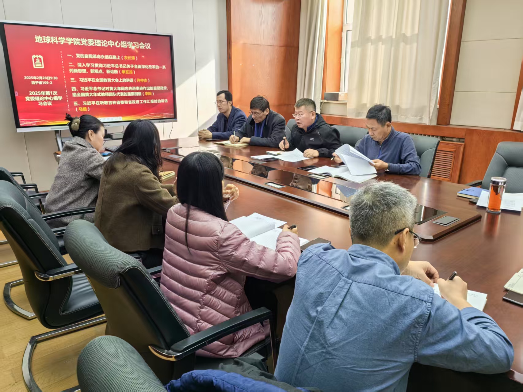 会上,衣长涛书记领学《习近平总书记关于党的建设的重要思想概论》一书中《党的自我革命永远在路上》一文以及新华社《中共中央政治局召开民主生活会 习近平主持会议并发表重要讲话》一文;单玄龙院长领学人民日报2024年7月26日第6版《深入学习贯彻习近平总书记关于全面深化改革的一系列新思想、新观点、新论断》一文;许中杰副院长领学习近平总书记在全国教育大会上讲话精神;李阳副书记领学习近平总书记对黄大年同志先进事迹作出的重要指示、给全国黄大年式教师团队代表的重要回信;马旭副书记领学习近平总书记在听取吉林省委和省政府工作汇报时的重要讲话精神。